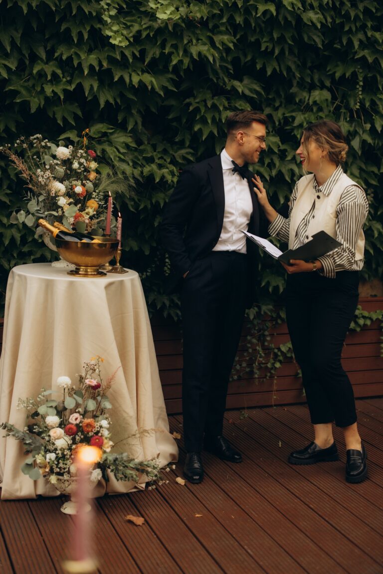 Als Wedding Day Coordinator kümmere mich um den Ablauf vor Ort, bin Ansprechpartnerin für Dienstleister*innen und Gäste und löse kleine Probleme, bevor ihr sie überhaupt bemerkt. Damit ihr euch auf das Wesentliche konzentrieren könnt: das Ja-Sagen, das Feiern und das Zusammensein.